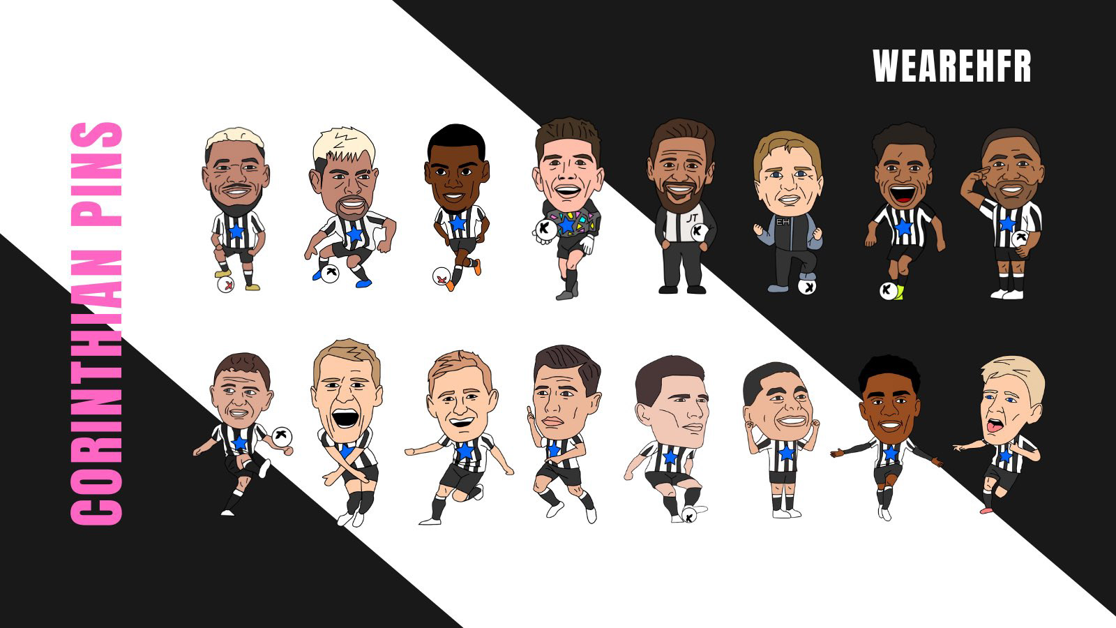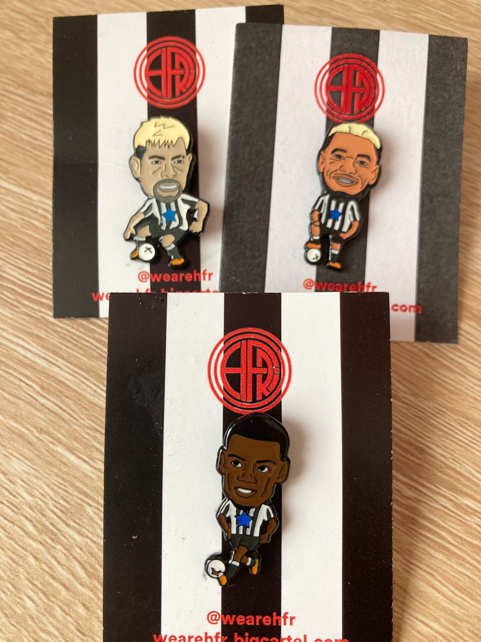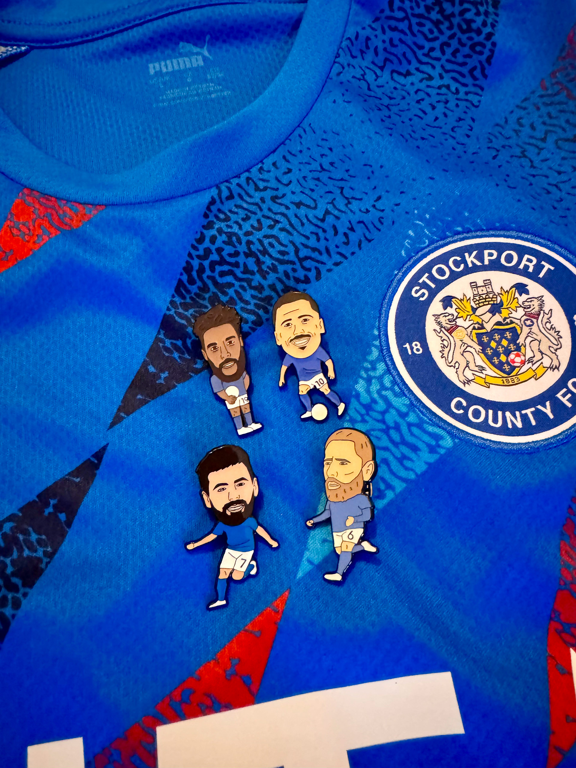 We have created two sets of pin badges, one based around Stockport County current players and legends and the other in collaboration with the lads and lasses at HFR (Hopeless Football Romantic) featuring the Newcastle 22/23 squad.
