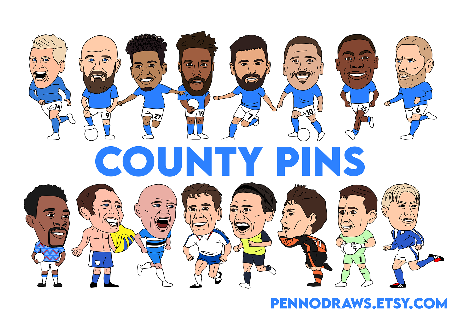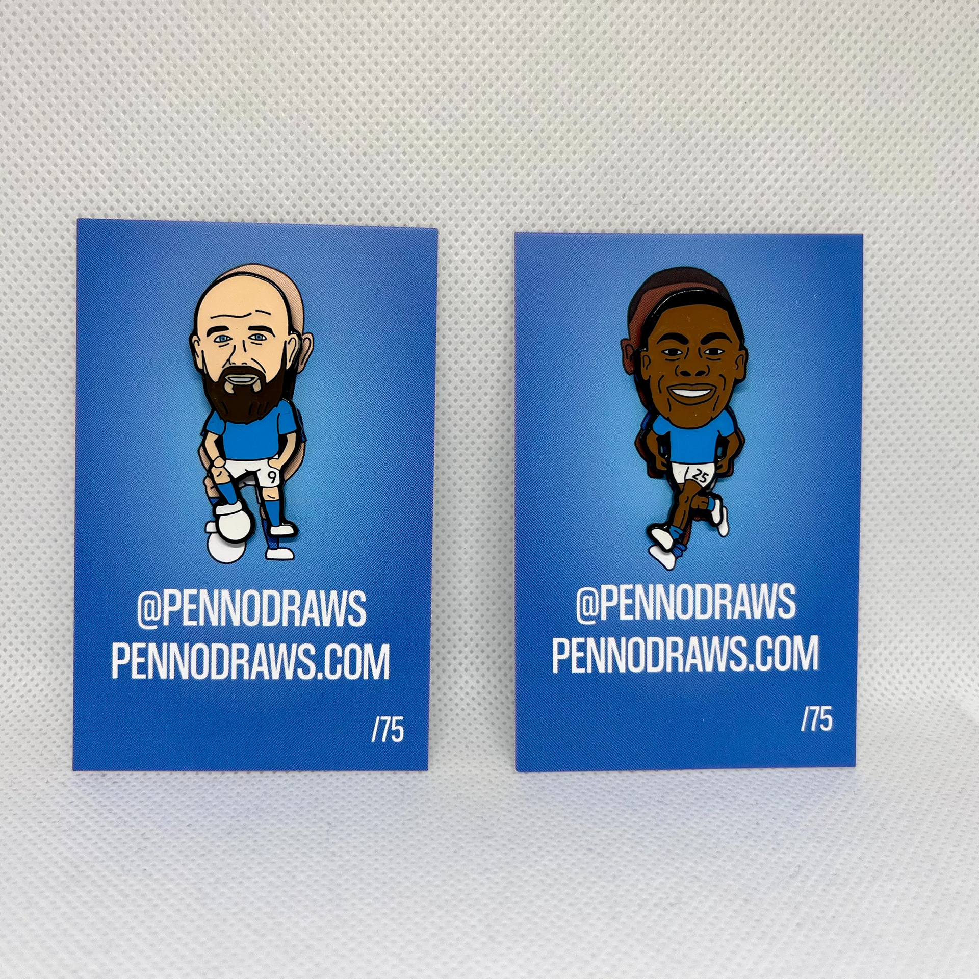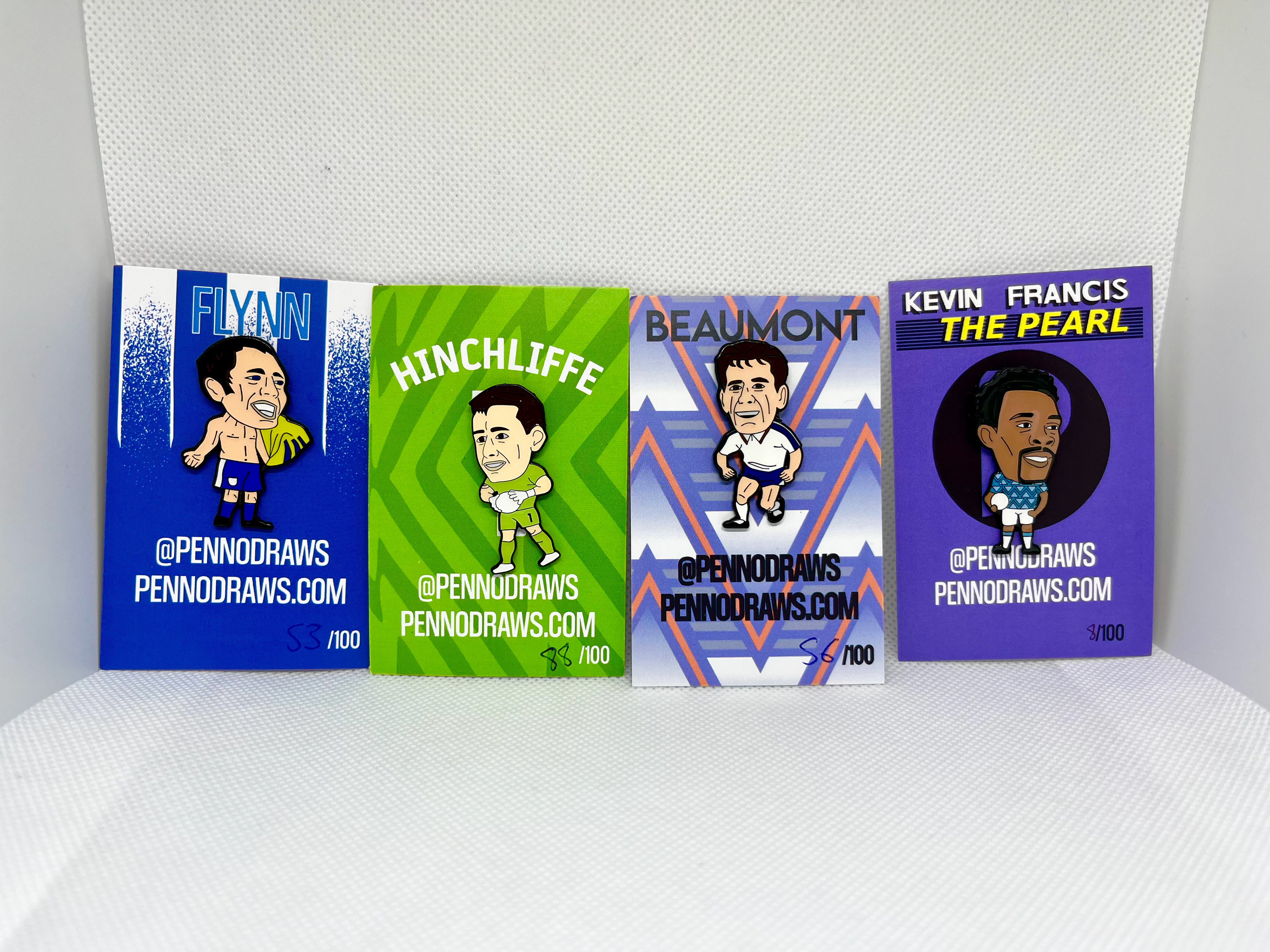 We have created two sets of pin badges, one based around Stockport County current players and legends and the other in collaboration with the lads and lasses at HFR (Hopeless Football Romantic) featuring the Newcastle 22/23 squad.